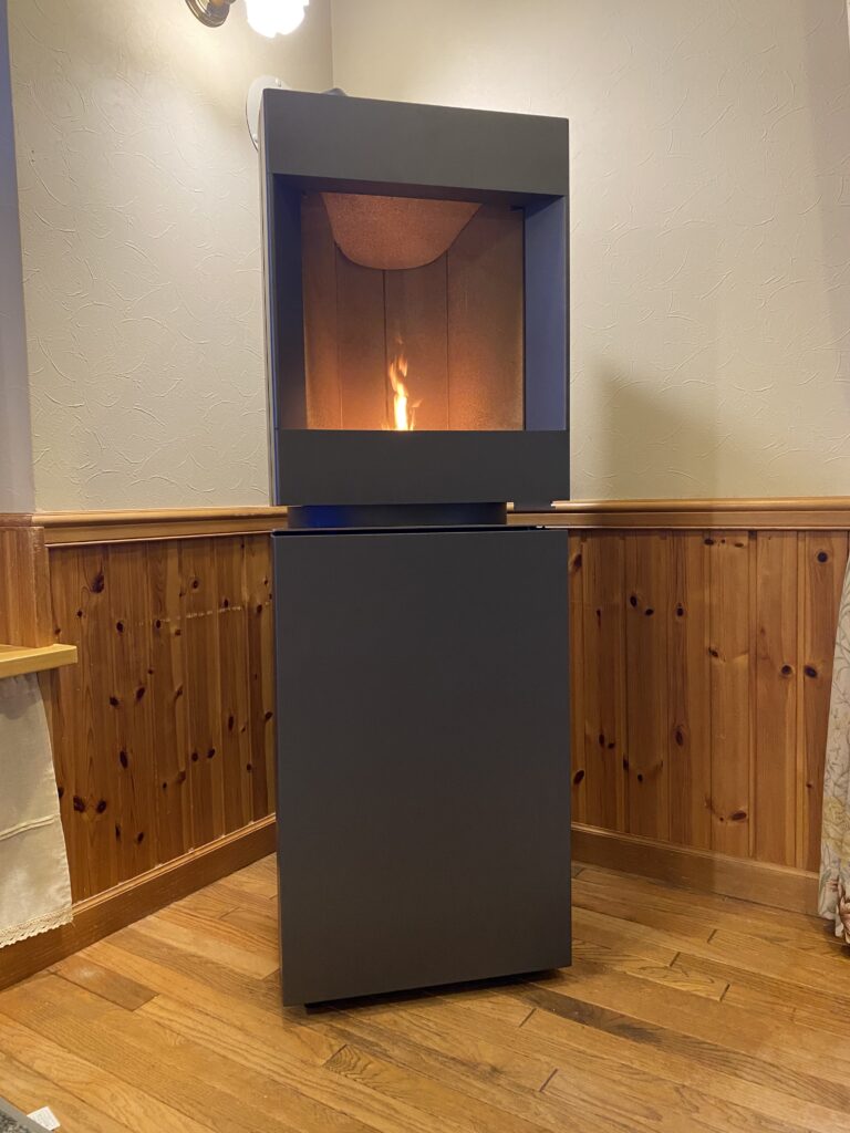 縦型なのでこのスペースには持って来い!なストーブです。